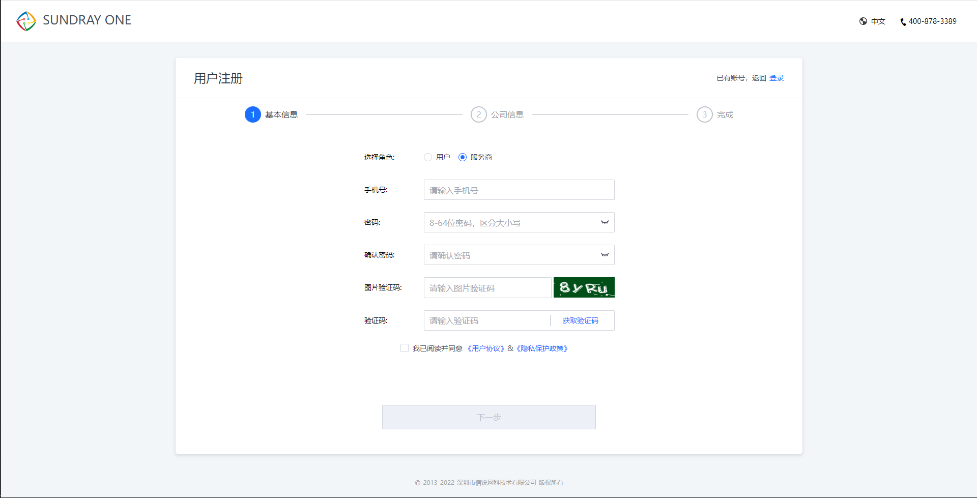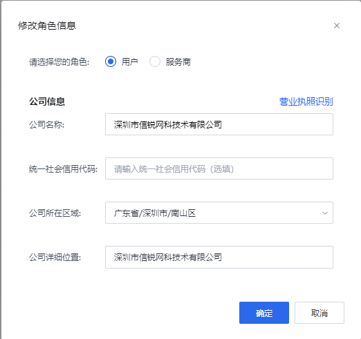 【用户】角色只需填写公司名称和选择公司区域、位置;