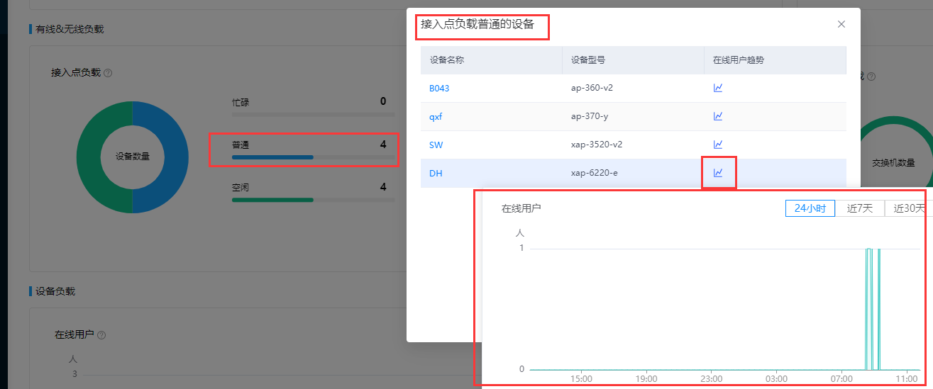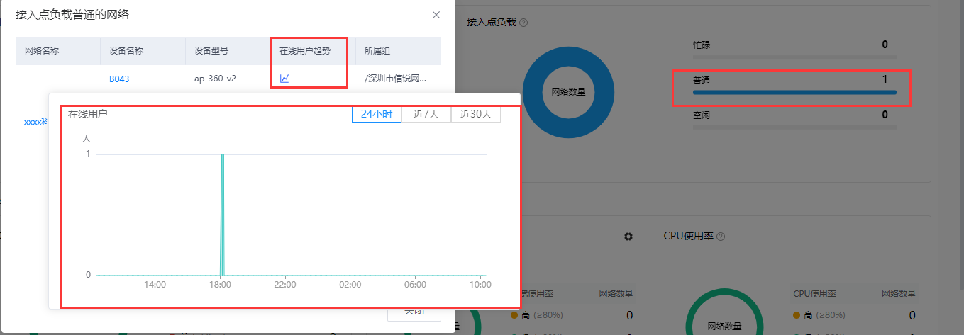 (3)图表详情呈现:项目名称、所属组、设备名称、接入用户趋势图