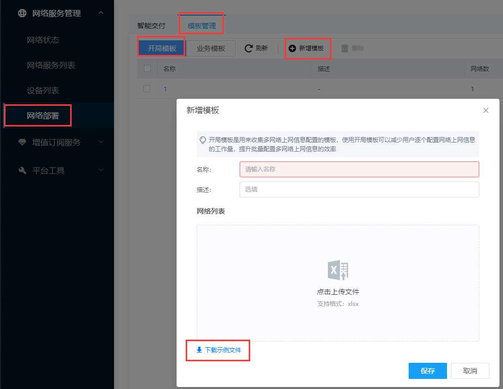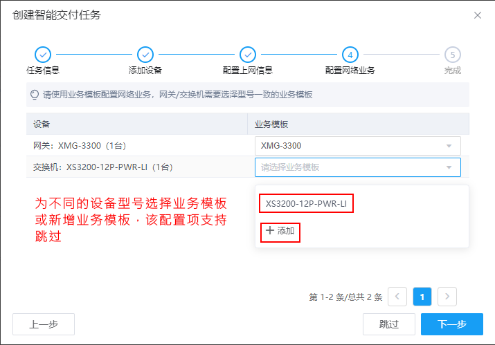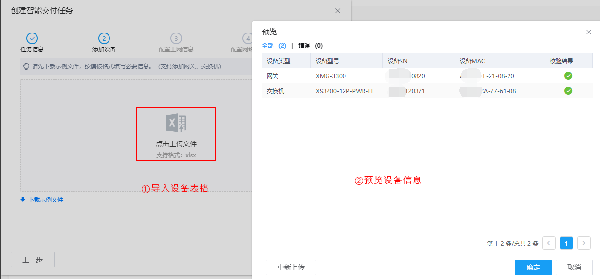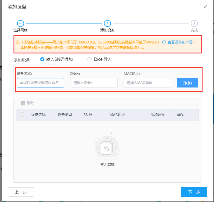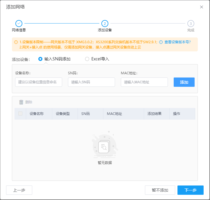 【添加设备】将对应的XMG网关或者XS云管交换机设备添加到对应的网络项目中,支持excel批量导入;