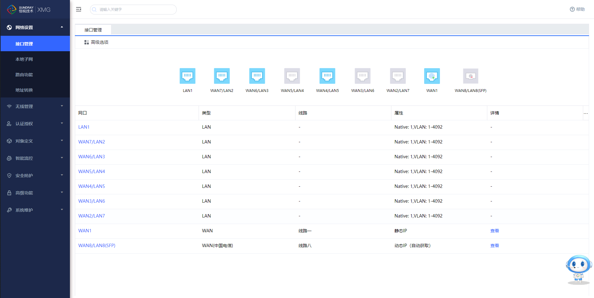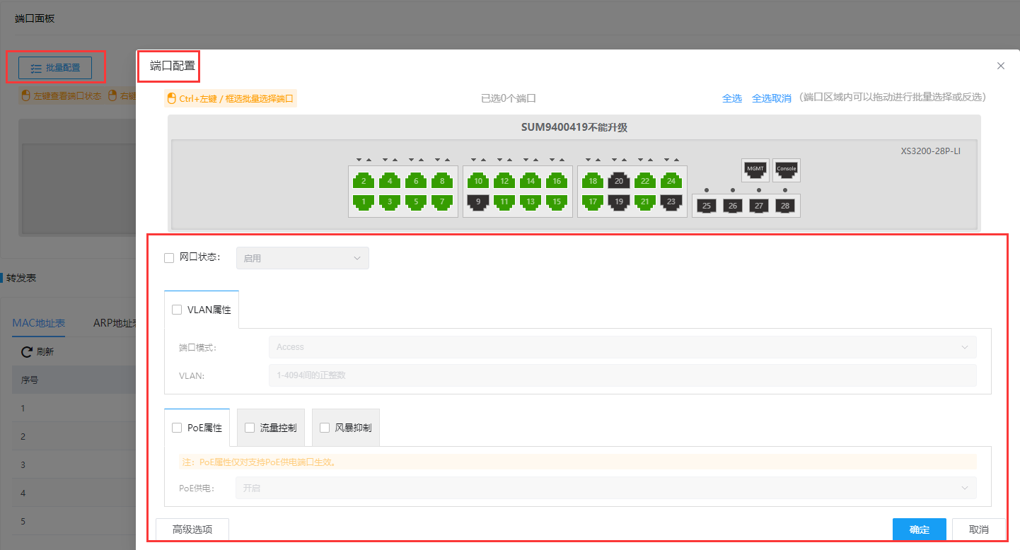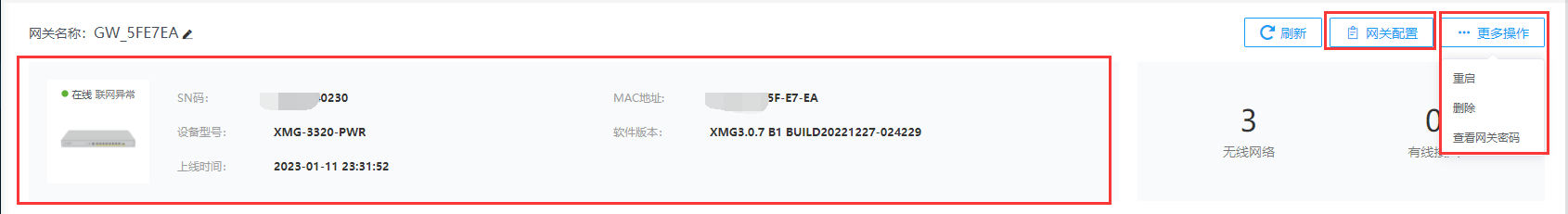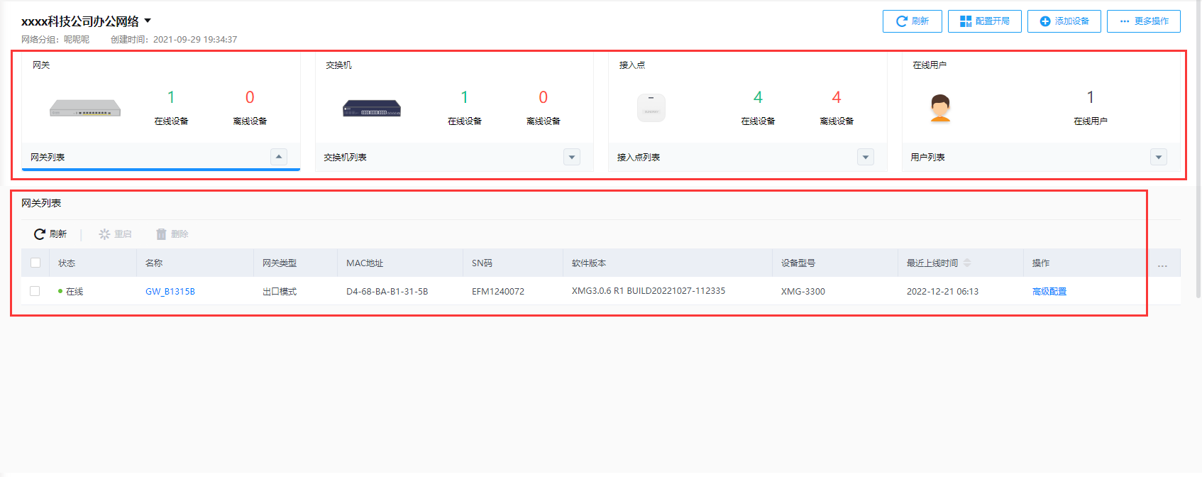 在设备列表里面,找到对应的XMG网关或者XS云管交换机设备,点击高级配置,可以跳转到对应设备的功能配置界面,详细的功能配置参考对应型号设备的用户手册。