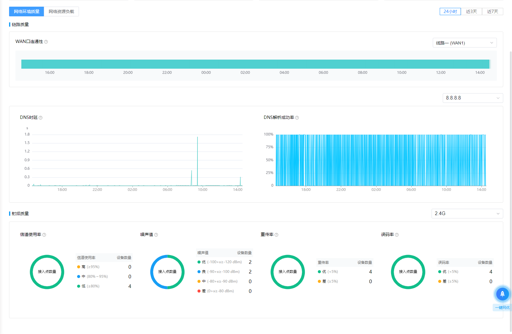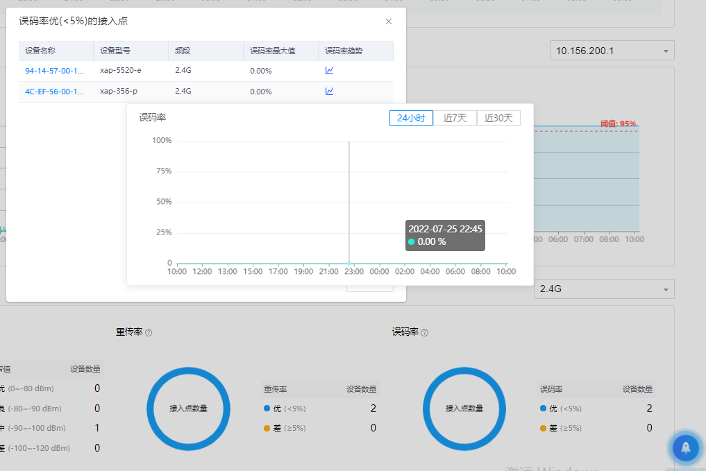 (1)统计方式:取项目内所有AP在时间范围内(今天、最近3天、最近7天)的最大值。区间:>=5% 差 <5% 优