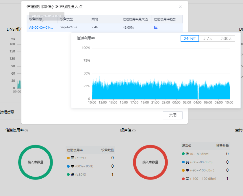(3)图表详情呈现:设备名称、设备型号、信道利用率最大值、趋势
