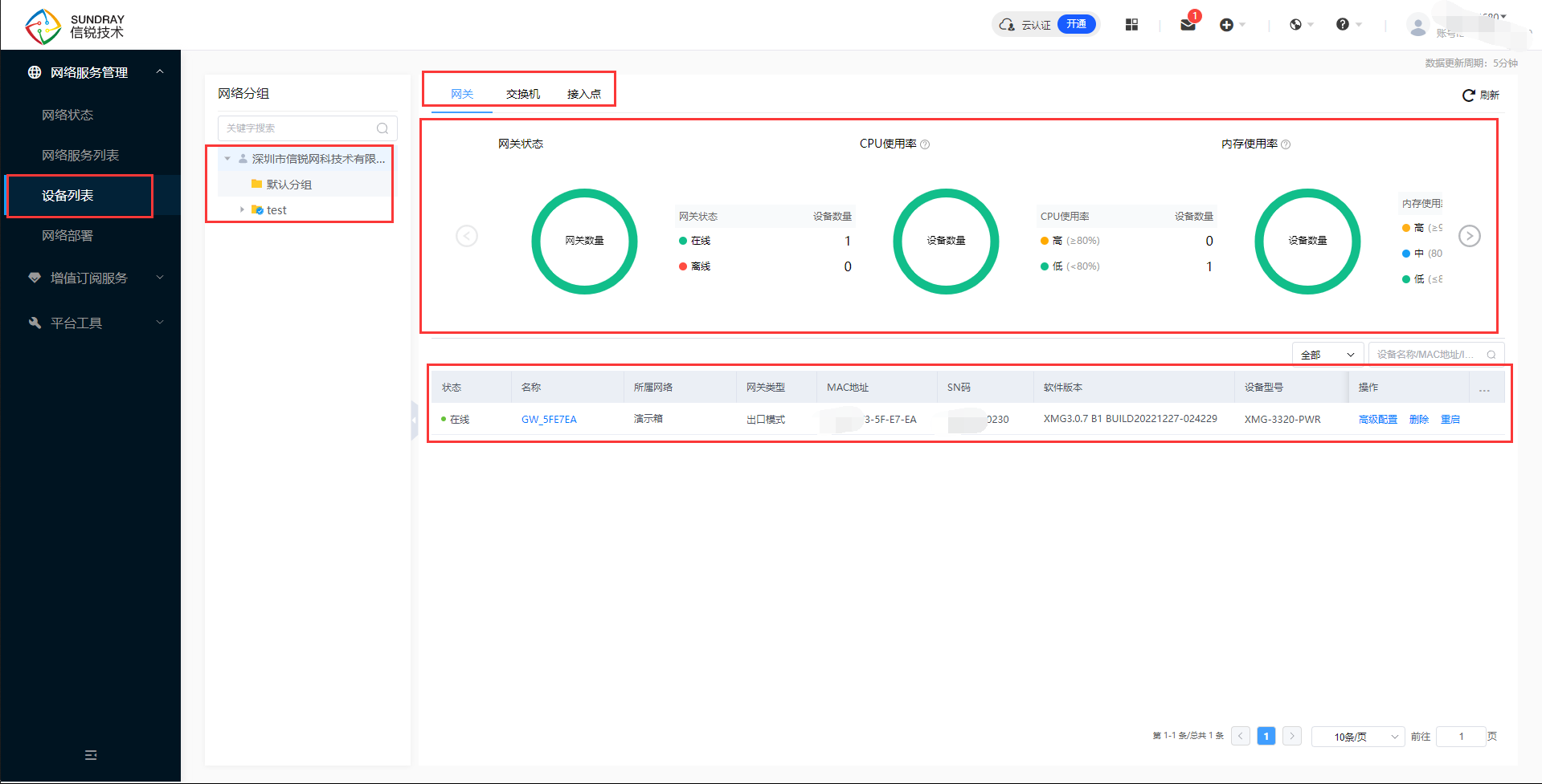 XMG网关已经正常完成开局配置,可以访问外网,收集XMG网关设备的SN和MAC,在小信云平台上添加设备