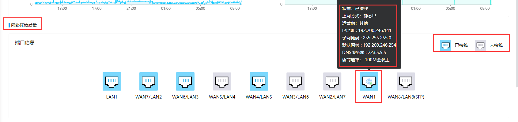 备注:区分不同链路,这里的值代表的是网关连通性检测地址的情况,不是网关与小信云的联通情况。旁路模式的连通性检测地址被隐藏掉了