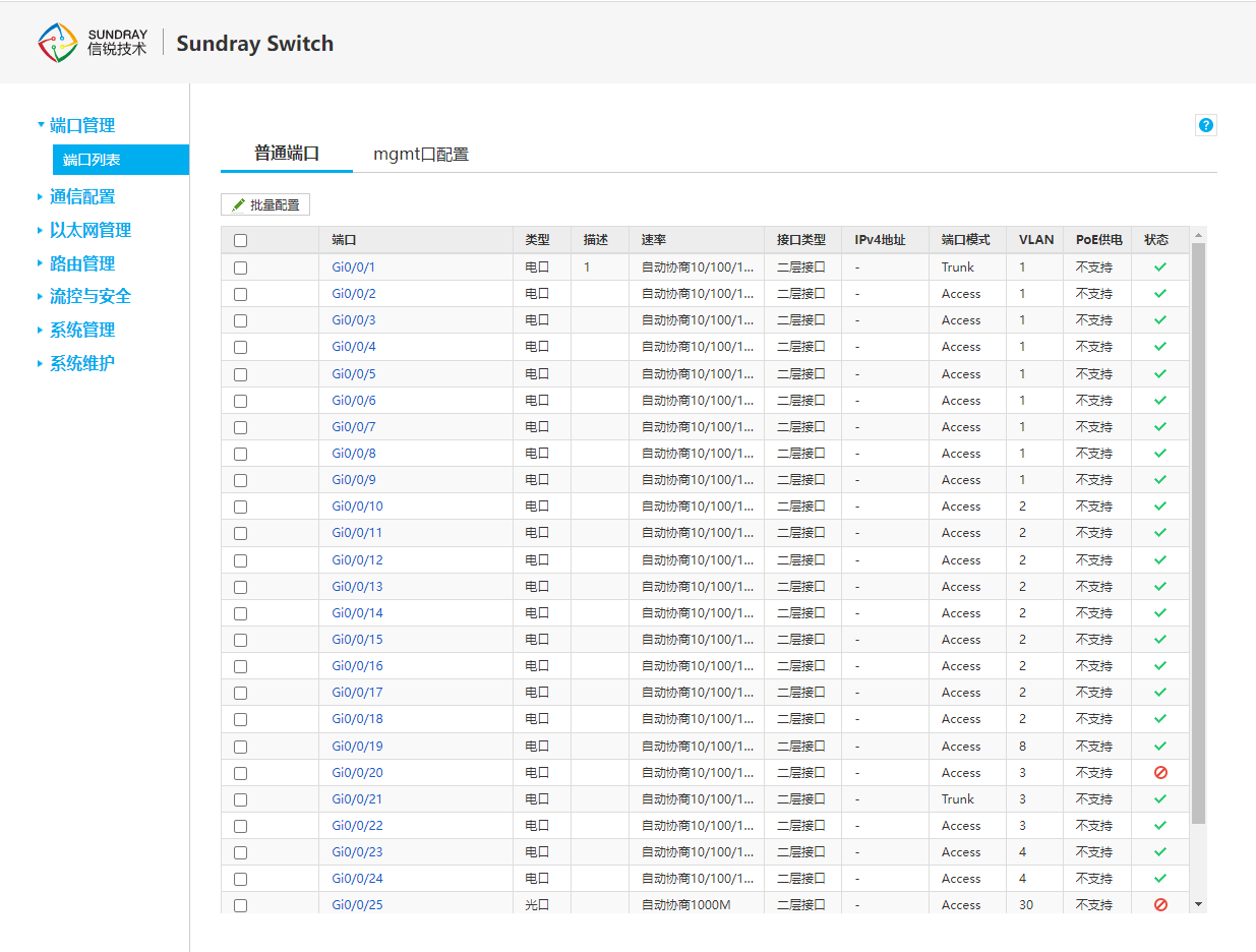 [查看网卡工作模式]:查看设备各网卡的工作模式。