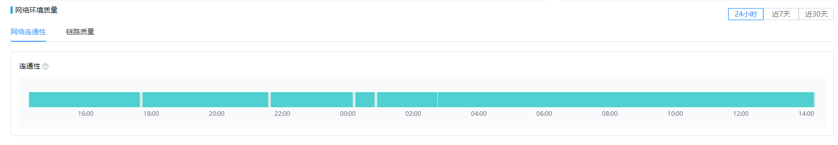 (1)统计方式:取项目下网关WAN口在确定的时间范围内的连通性(最近24小时(取上报的原始数据,一分钟一个点)、最近3天(聚合数据,一个小时一个点,需要在聚合的时间内上报的所有数据点位都是连通的,聚合的点才是连通)、最近7天(也是一个小时一个点))