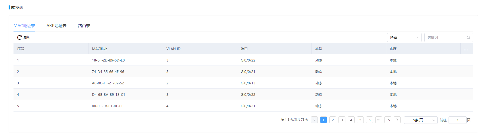 [查看网络配置]:查看设备本机的网络配置,包括接口IP配置等。