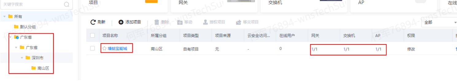 【项目总数】统计在当前网络分组的账号分组目录下,有设备的项目;