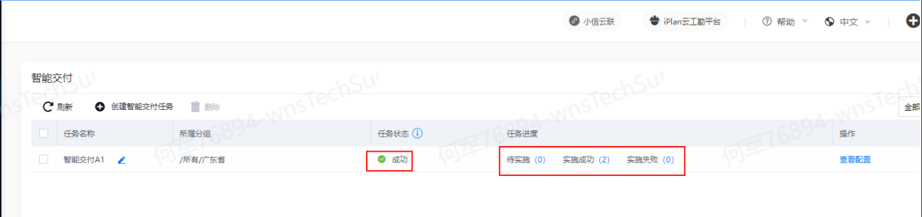 升级完成后,设备升级状态里会显示“升级成功”,界面如下: