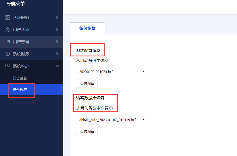 支持系统配置恢复和访客数据库恢复,小信云会定时在云端自动备份当前账号的系统配置和访客数据库。