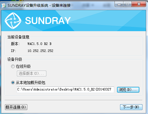 2.SUNDRAY设备的某些版本不支持在线升级功能,具体请联系信锐技术客户服务中心确认。
