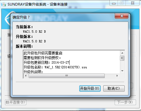 1.使用SUNDRAY设备升级系统进行在线升级时,要求所连接的SUNDRAY设备能够正常上网,否则将不能进行在线升级。