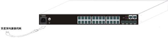 1. 将包装中附带电源线的一端插到交换机后面板上的电源插槽中,另一端插到标准的带过 载和漏电保护的电源插座上。
