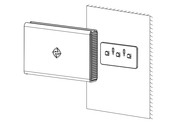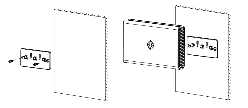 ① 将壁挂支架固定于墙体 ②安装智能会议主机