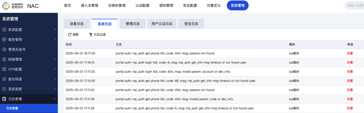 出现接口调用失败时,在控制器系统日志中会有相关日志: