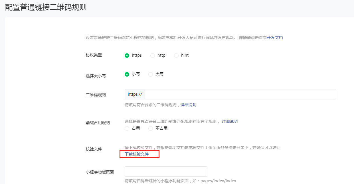 (3)如需使用PC端认证,则需要在[开发管理]-[扫普通链接二维码打开小程序]中添加上对应地址,需要在改地址域名后台目录中增加对应的校验文件