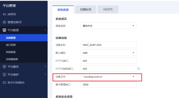 (2)[系统配置]-设备证书选择客户自己的合法证书;