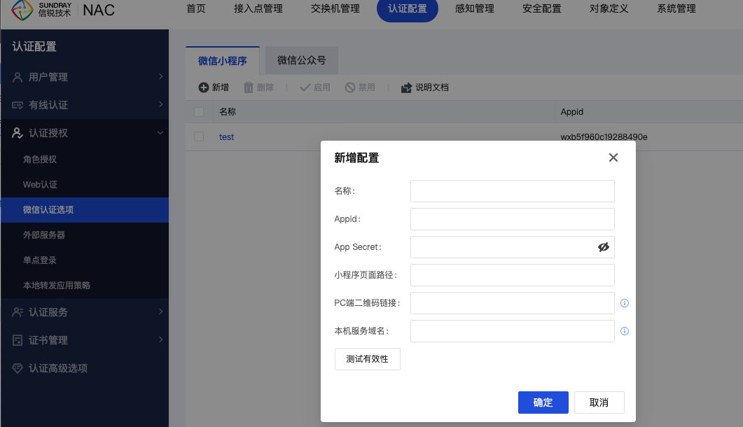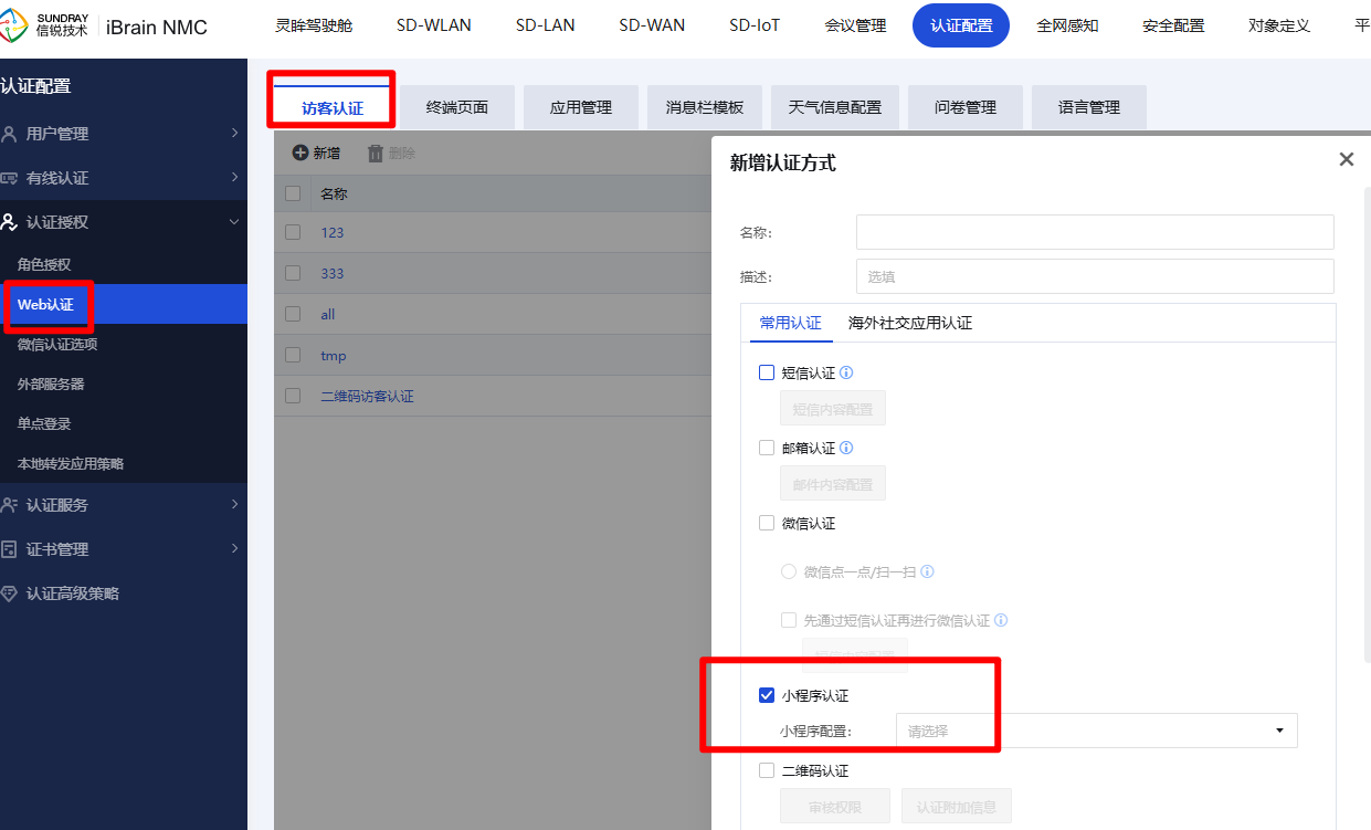 (4)[访客认证]页面新增小程序认证的访客认证。