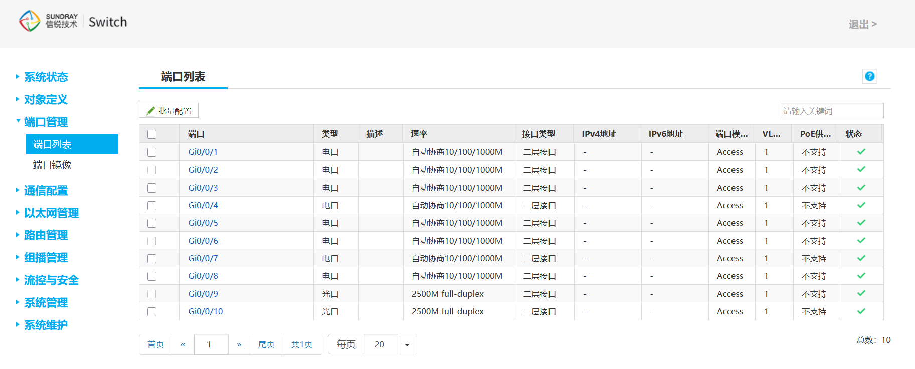 - 一旦连接成功,设备正常上电,则相对应的交换机端口Link/Act状态指示灯工作。