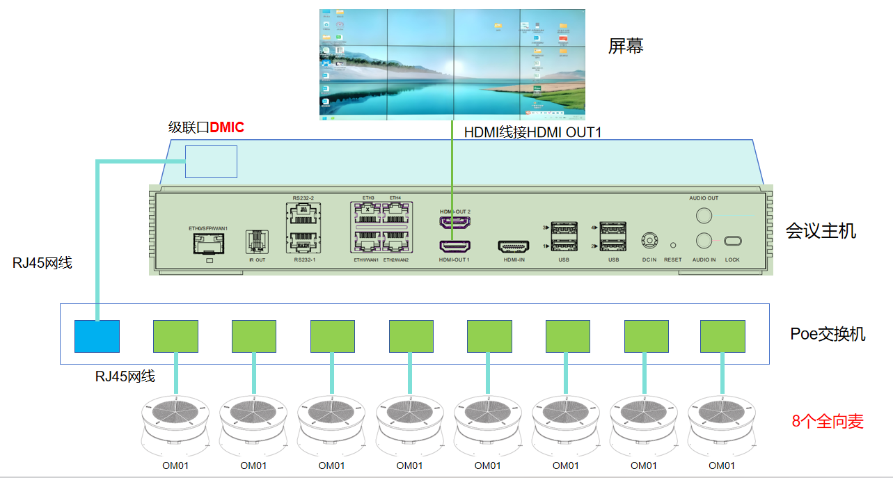SI-WM20-AV会议主机接线图---级联OM01共2级联
